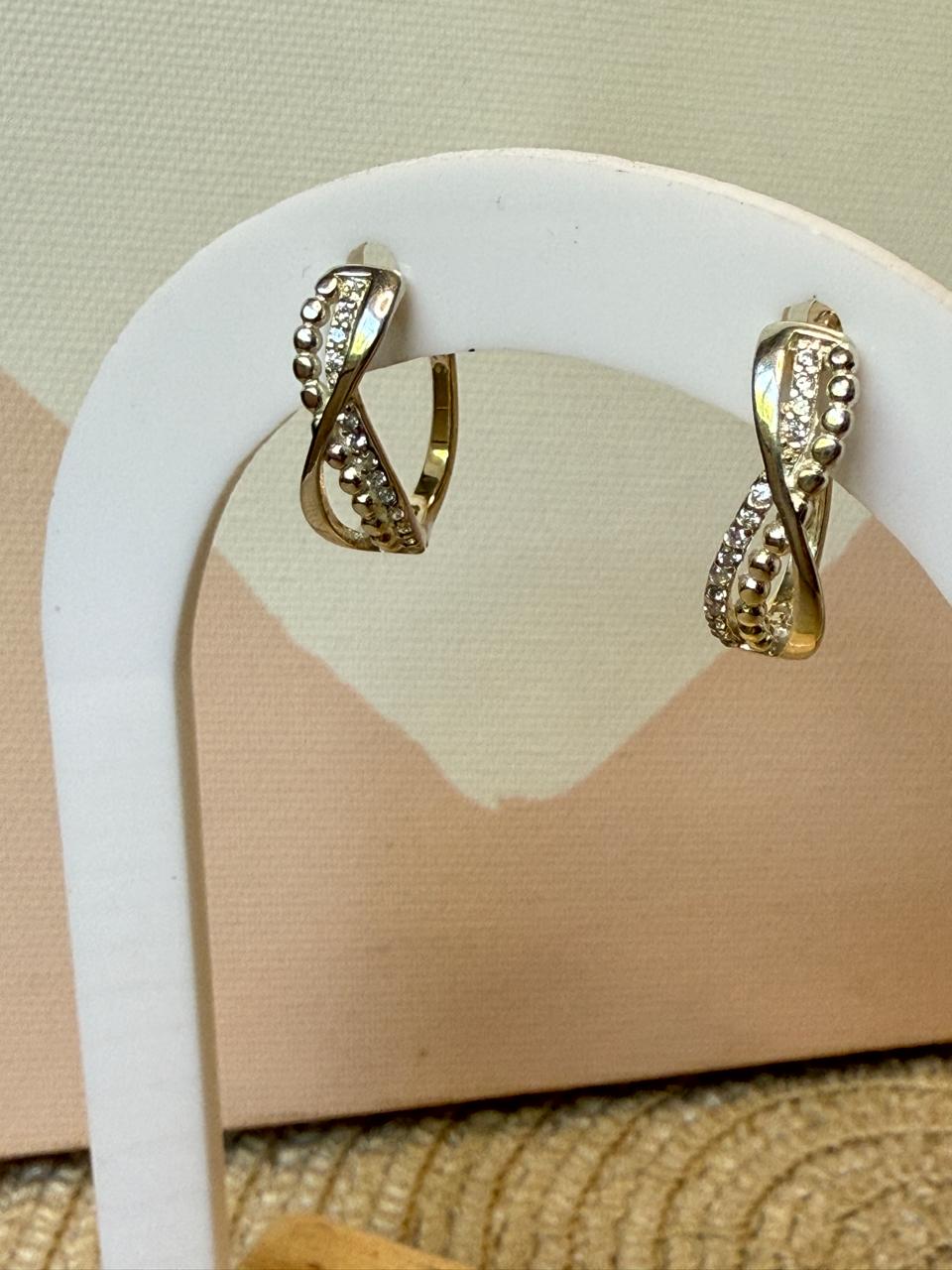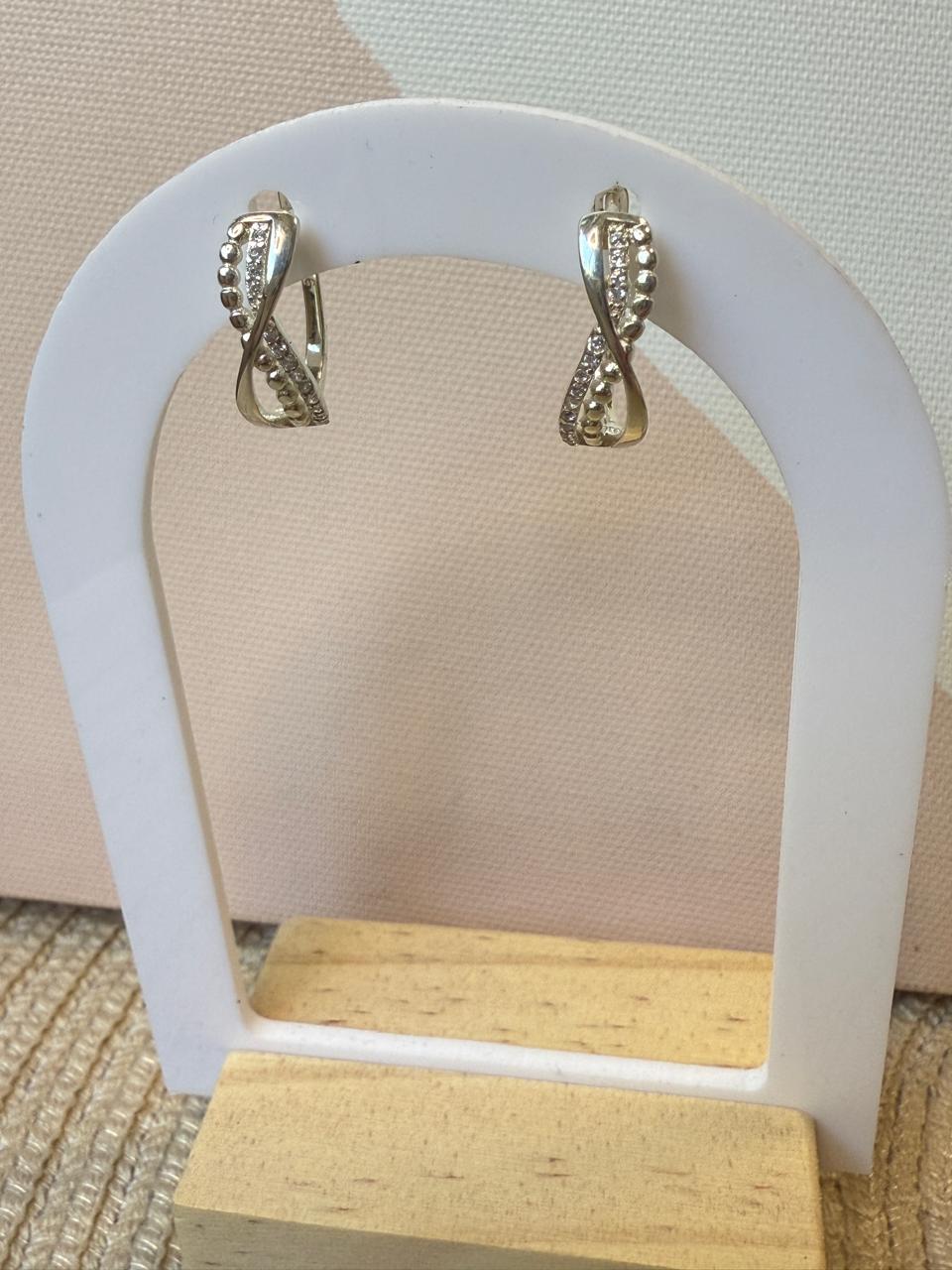 Aros argollas confeccionados en plata 925 con dije frontal de infinito con detalles de calado, labrado y cubics micropavé semiengarzados