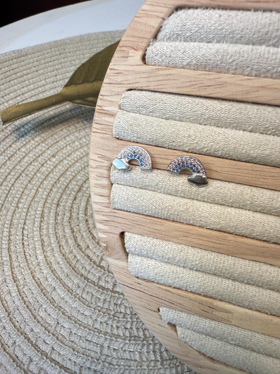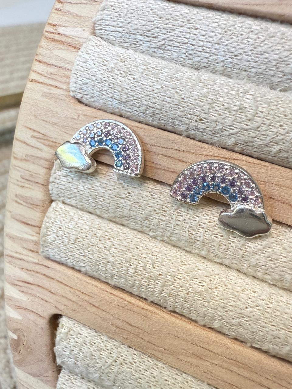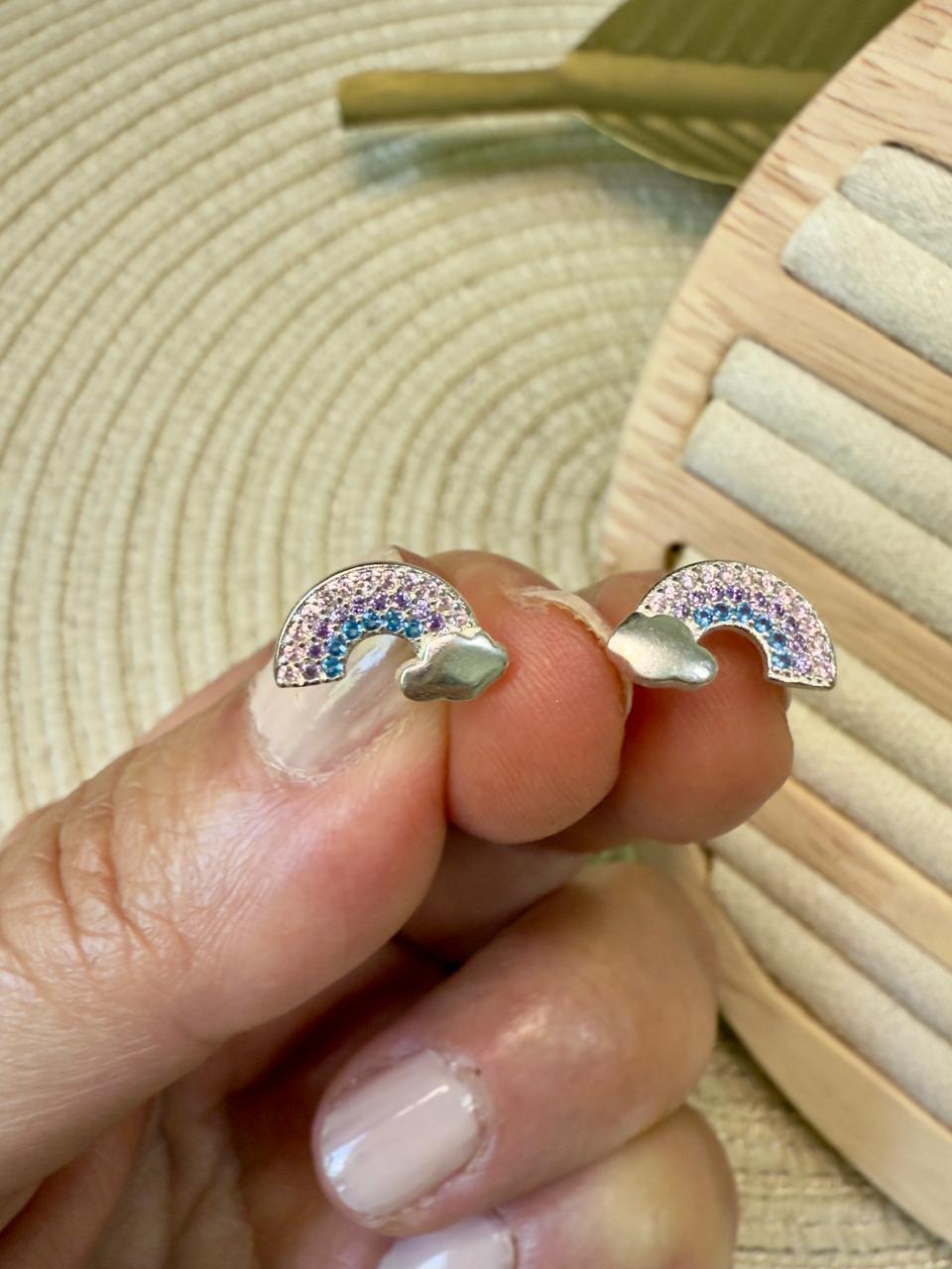 Aros pasante con mini dije arcoiris y nube con microcubics pavé semiengarzados multicolor