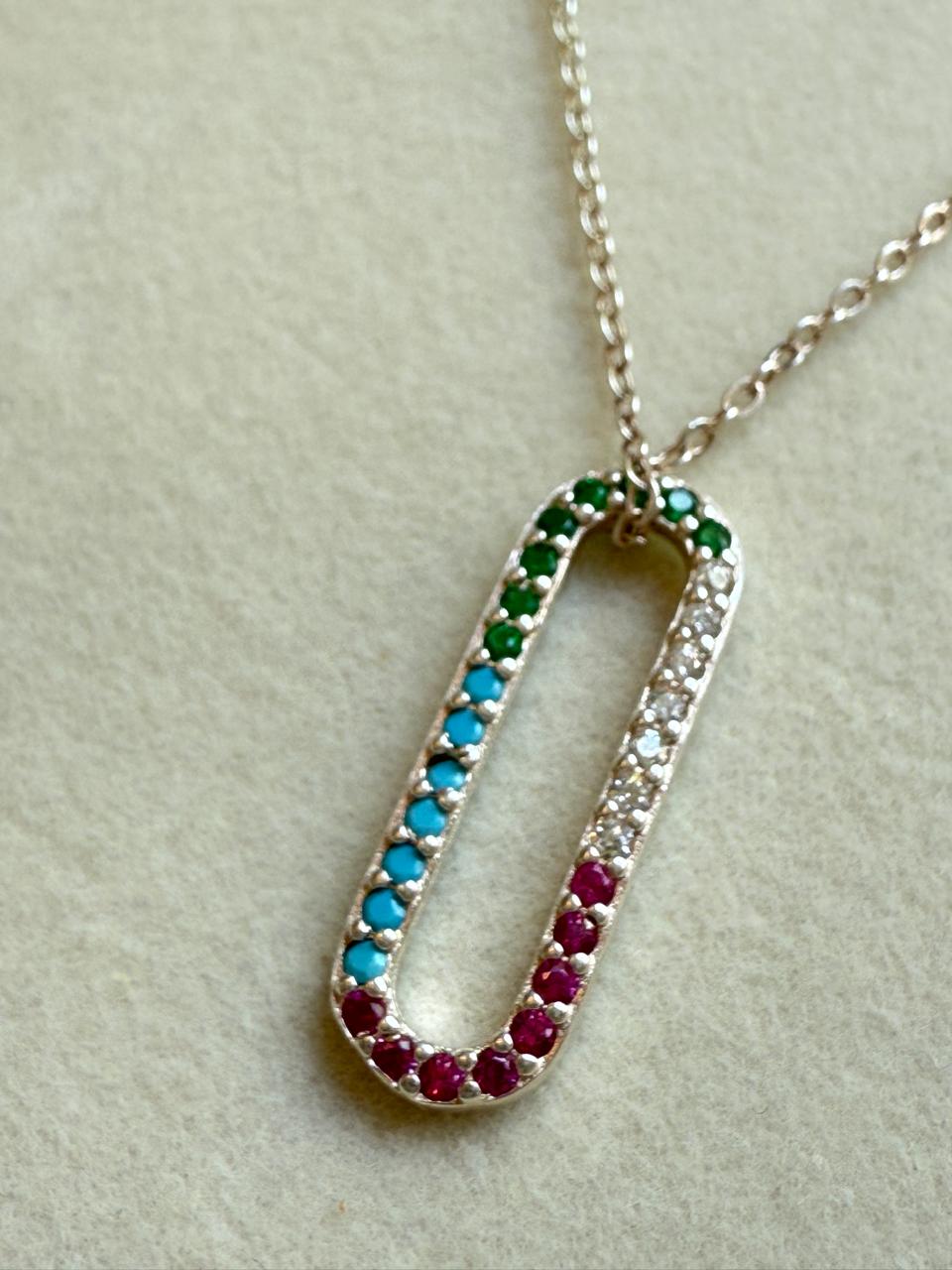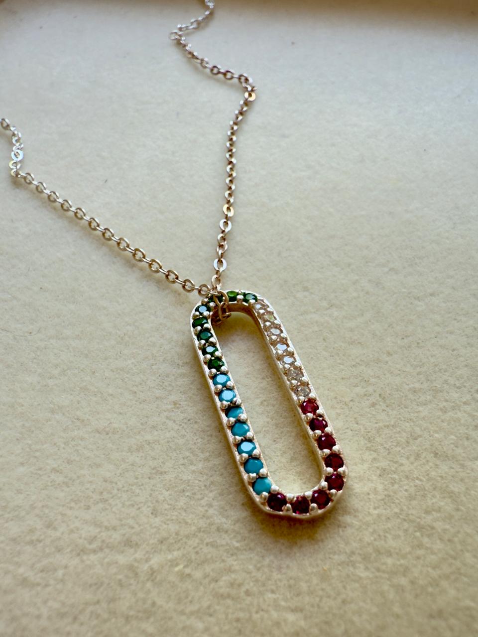 Conjunto confeccionado en plata 925 con dije oval con cubics engarzados en colores pastel