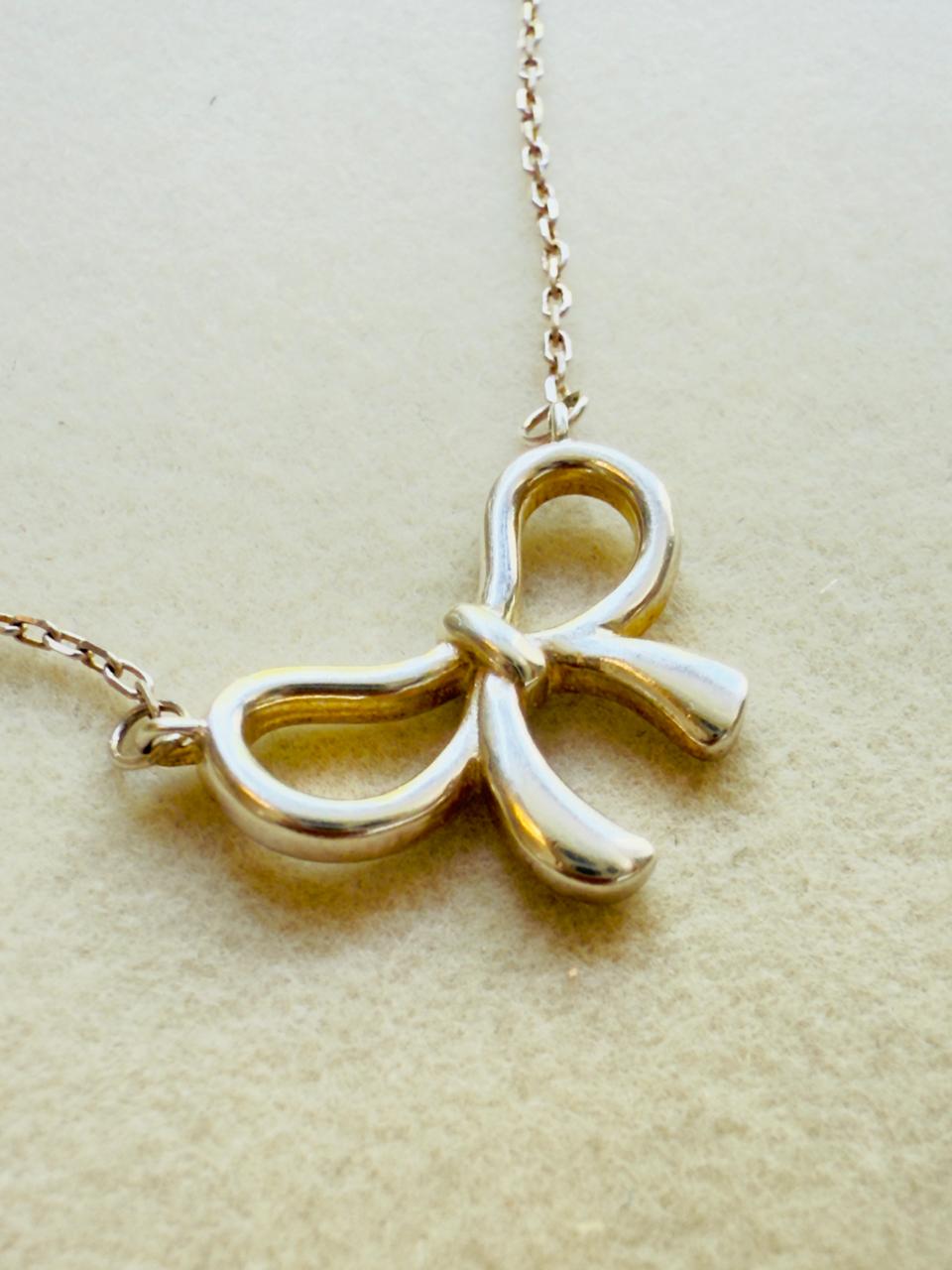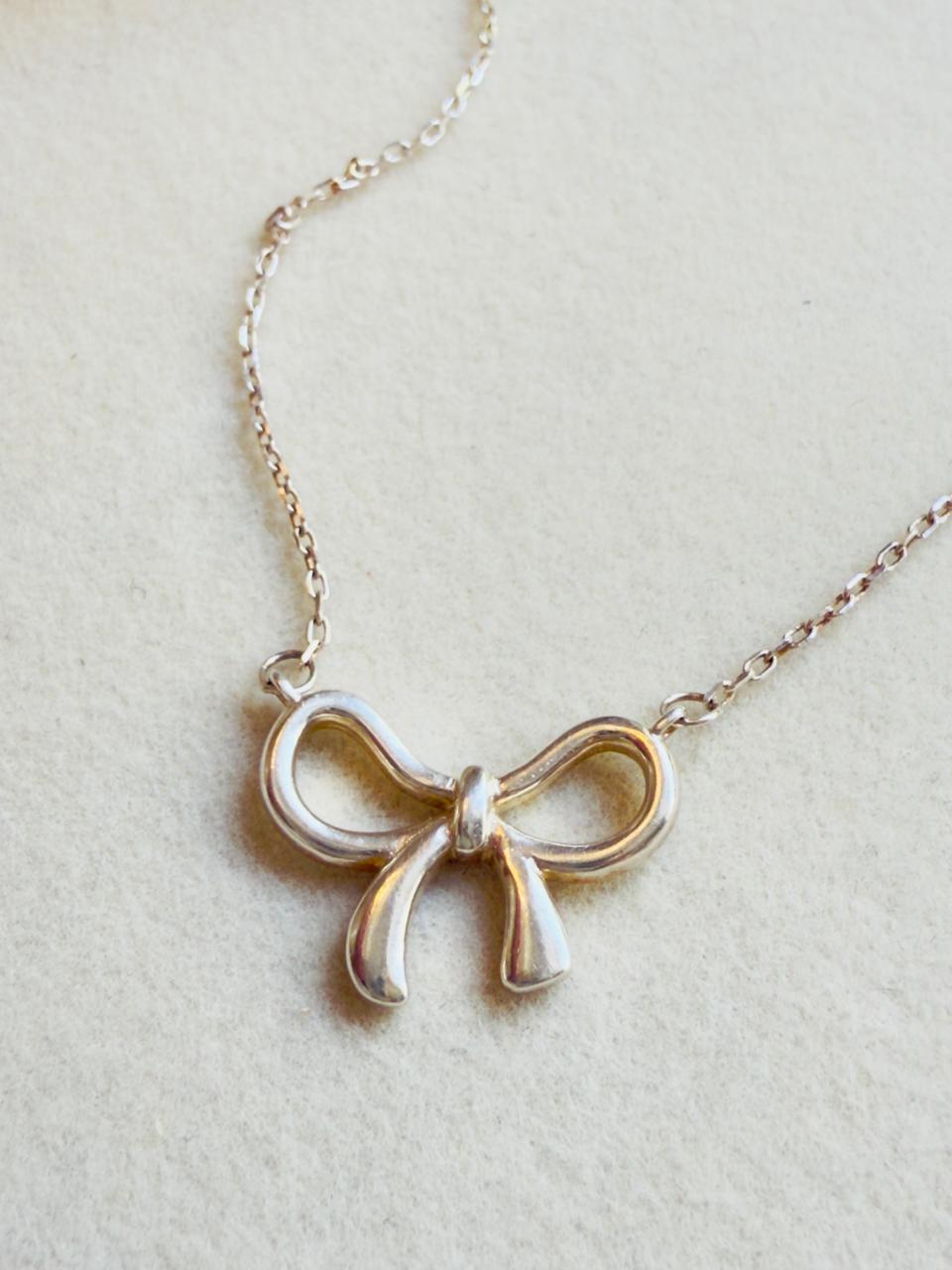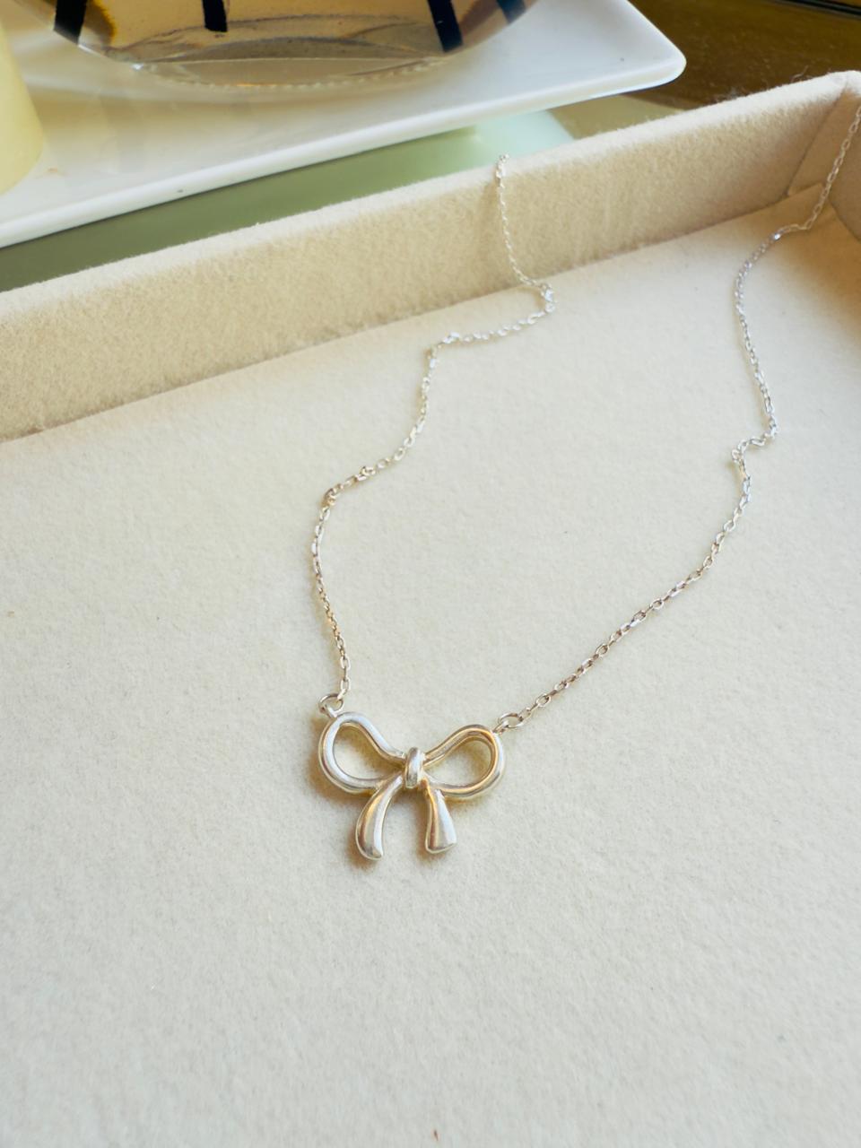 Conjunto confeccionado en plata 925 con dije de moño calado en plata lisa
