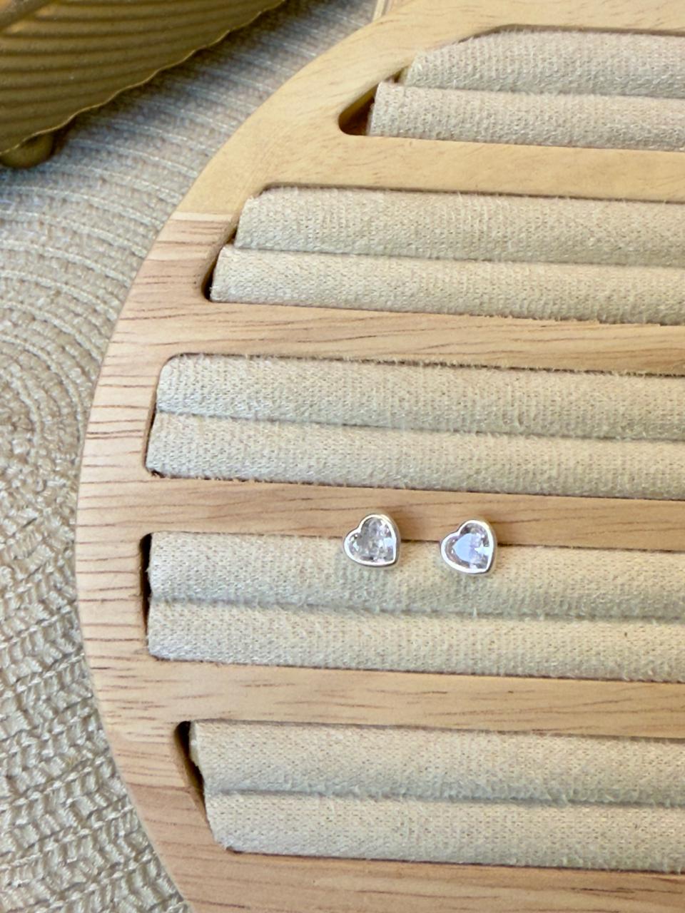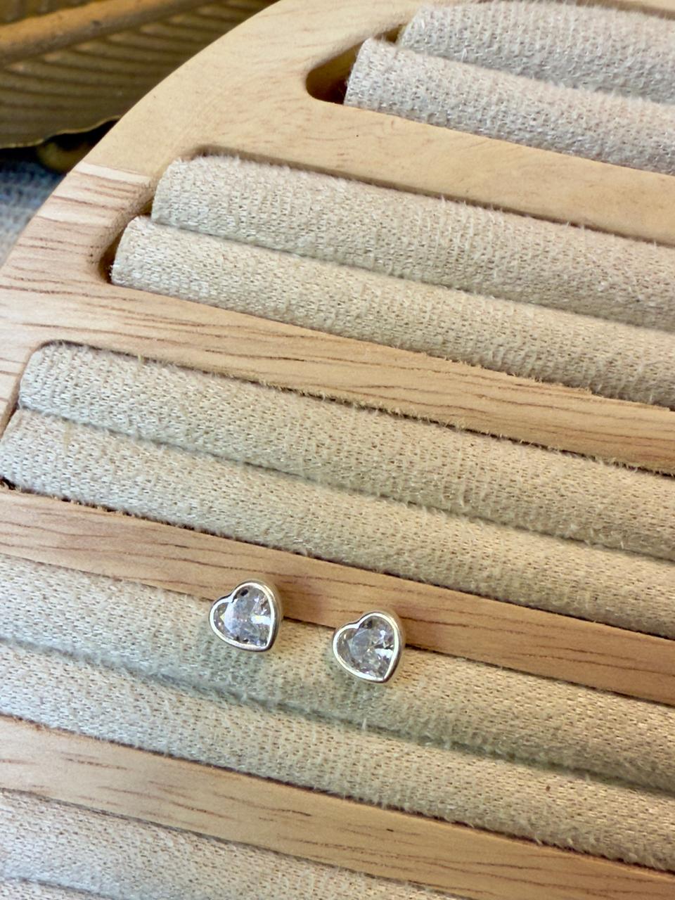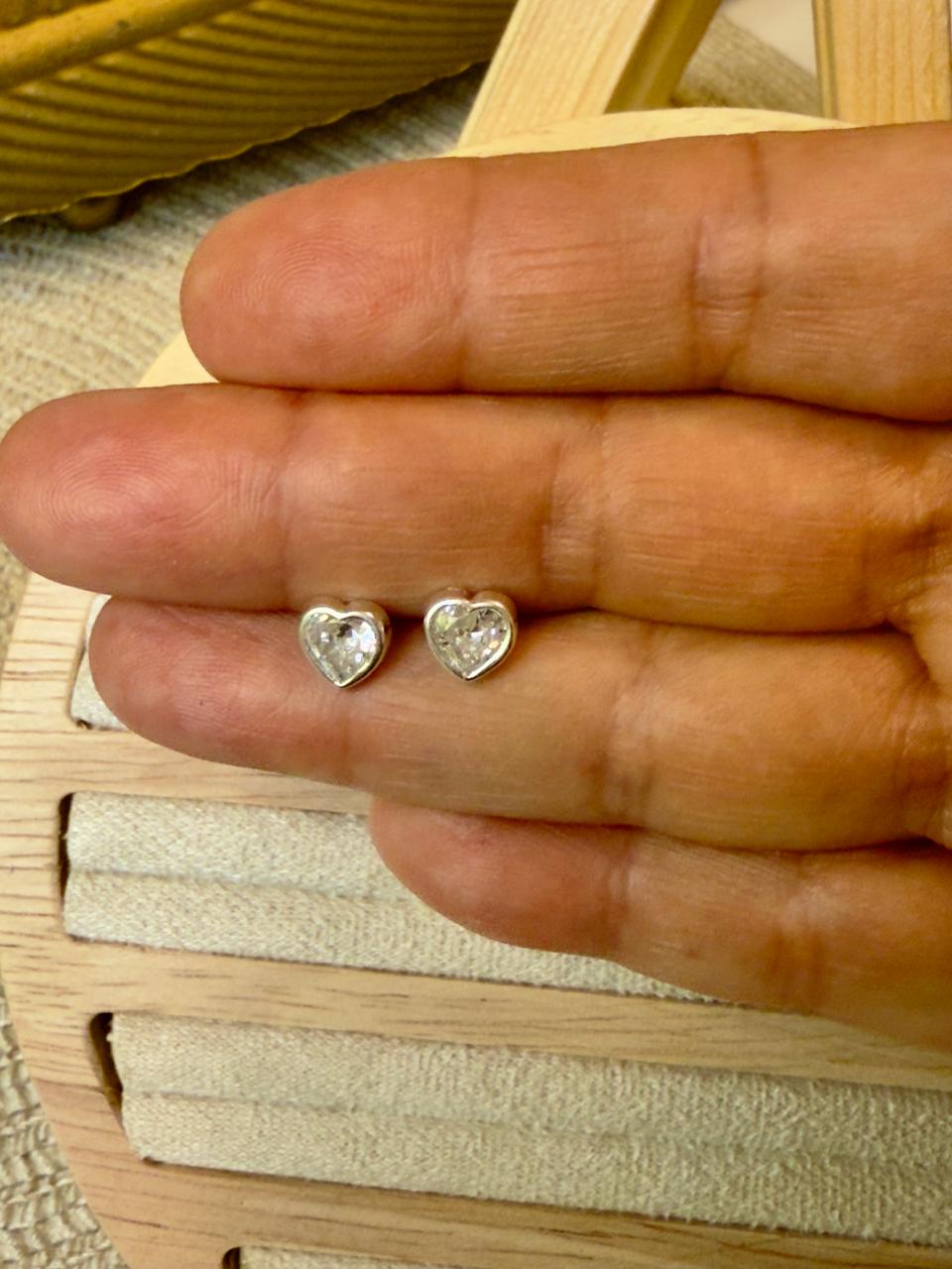 Aros pasantes confeccionados en plata 925, con forma de corazón con cubics circon transparente