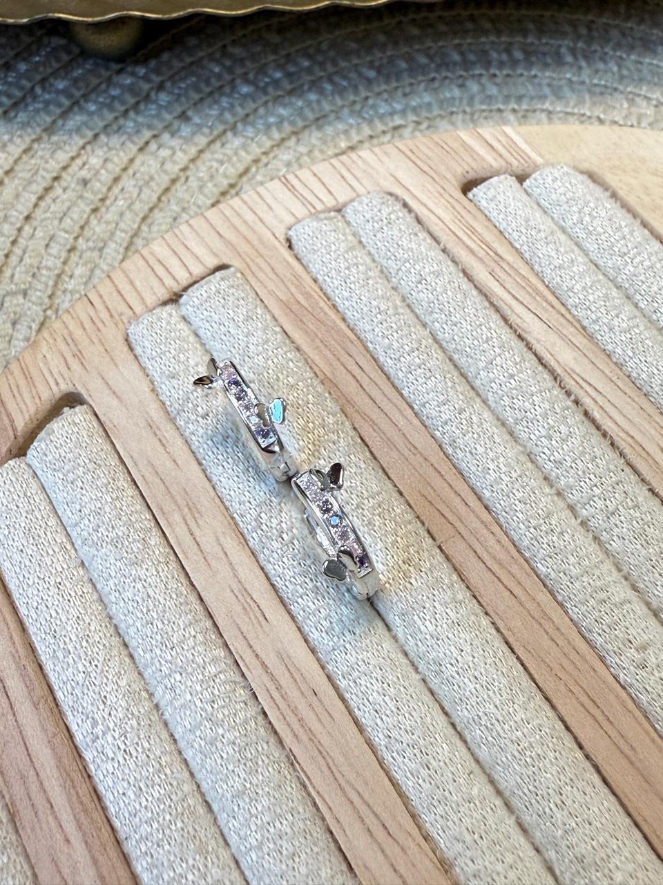 Aros argollas confeccionados en plata 925 con cubics en colores rosados y lilas y detalle de mini mariposas