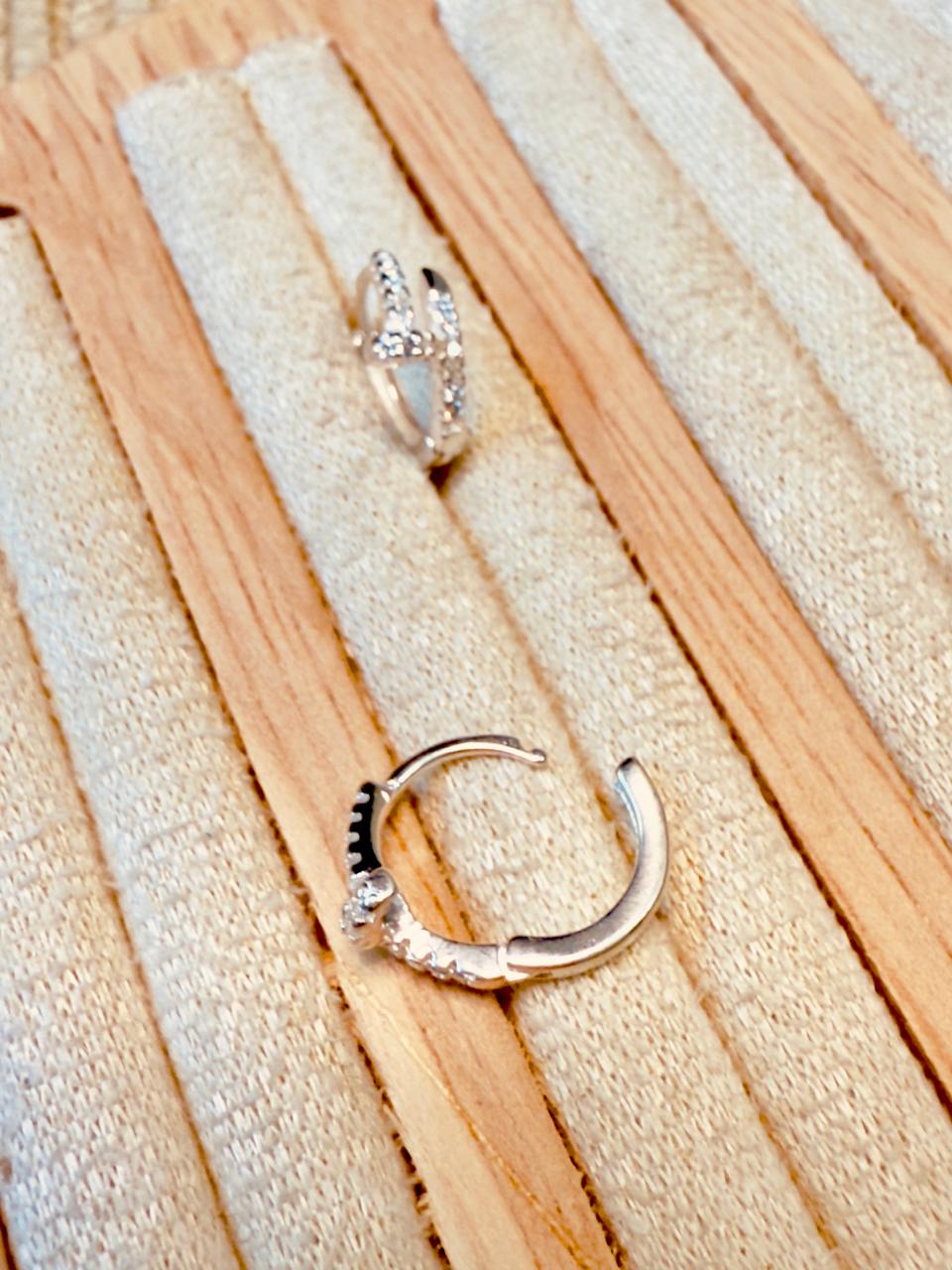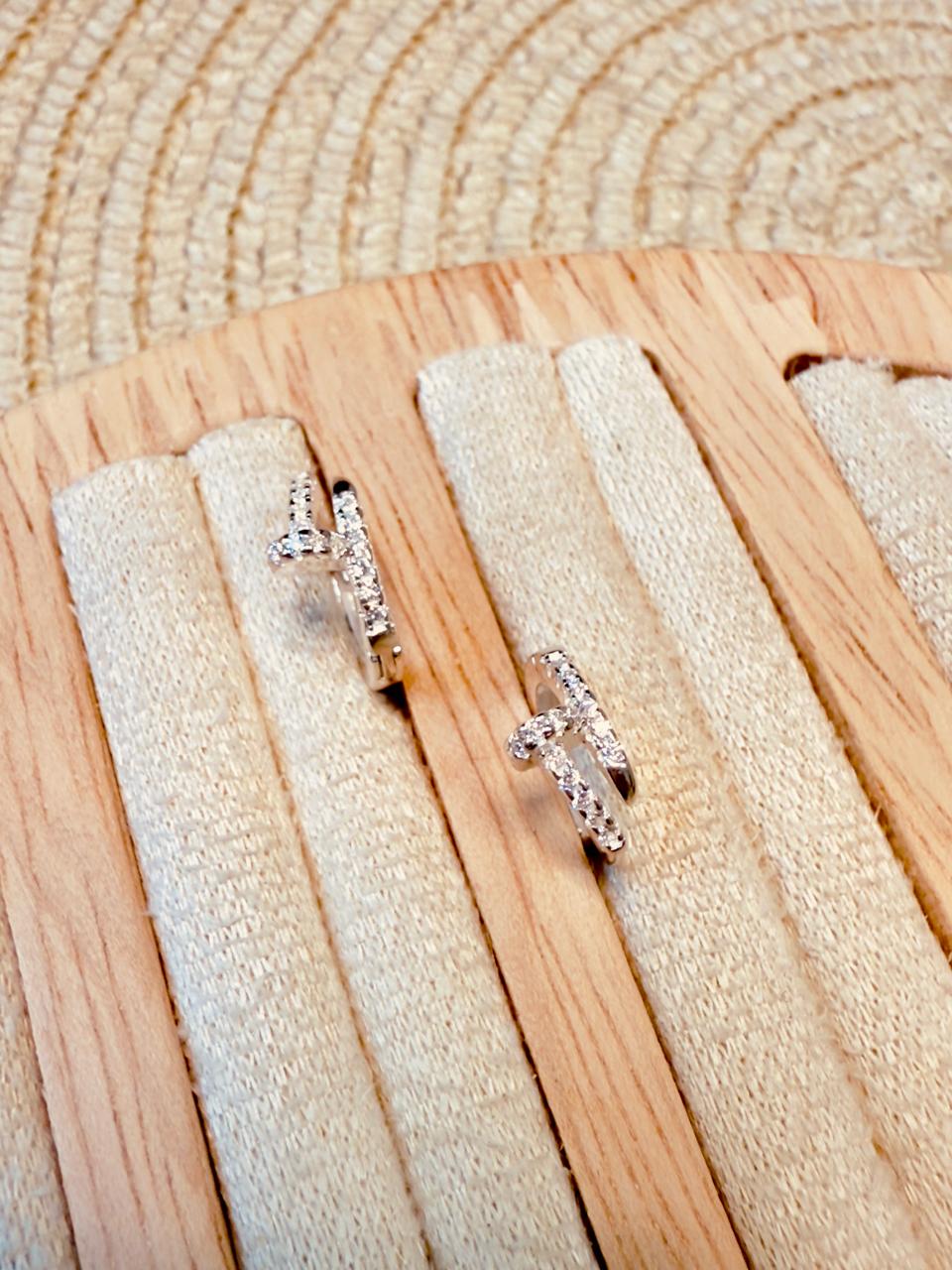 Aros argolla en forma de clavo con cubics micropavé semiengarzados,confeccionados en plata 925