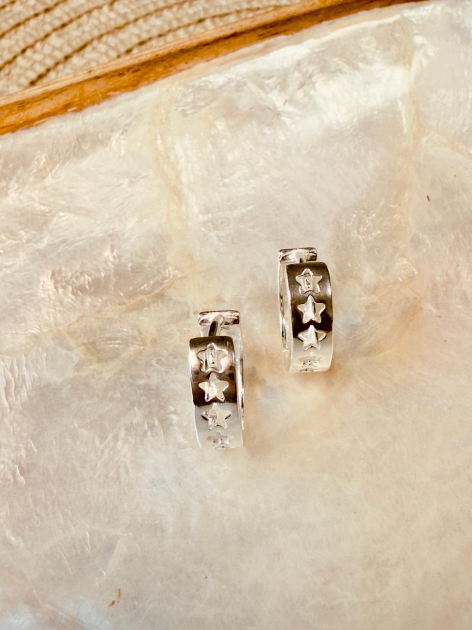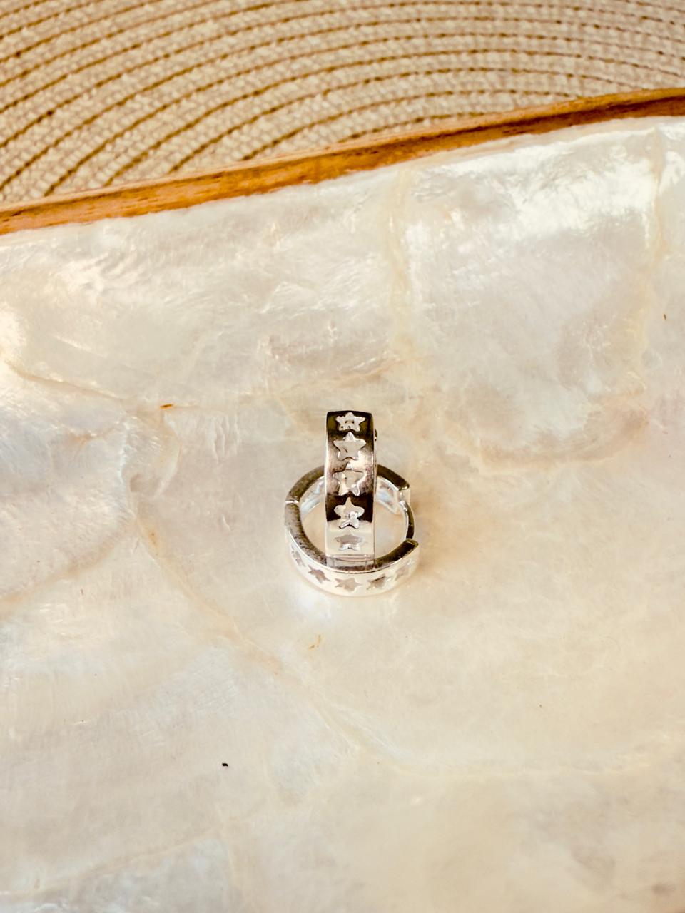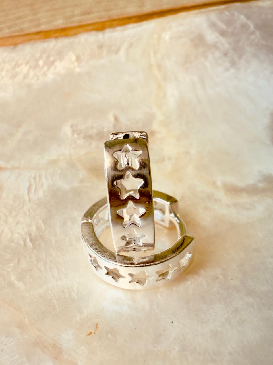 Arosa argolla en forma de cinta con pequeñas estrellas caladas, confeccionadas en plata 925