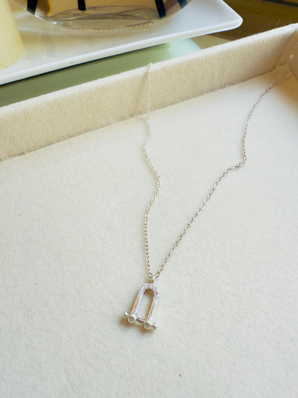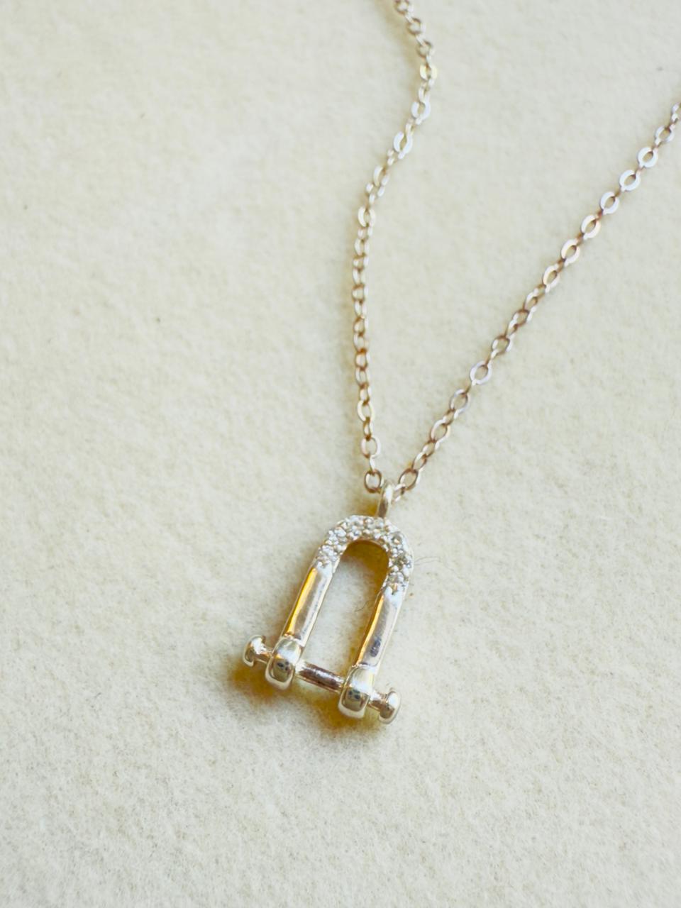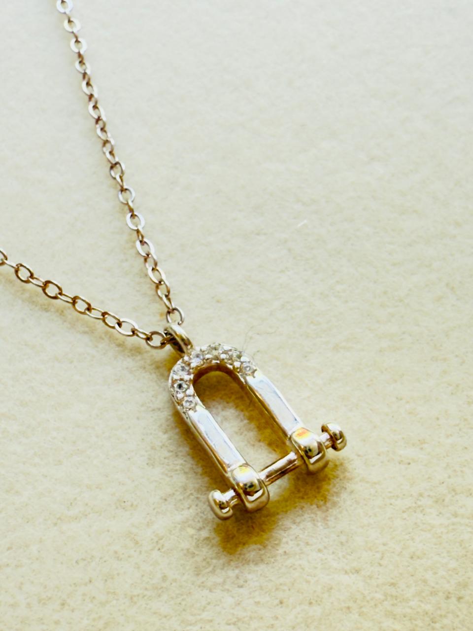 Collar confeccionado en plata 925 con dije central en forma de herradura con detalles en cubics engarzados. Alargue y cierre también en plata 925