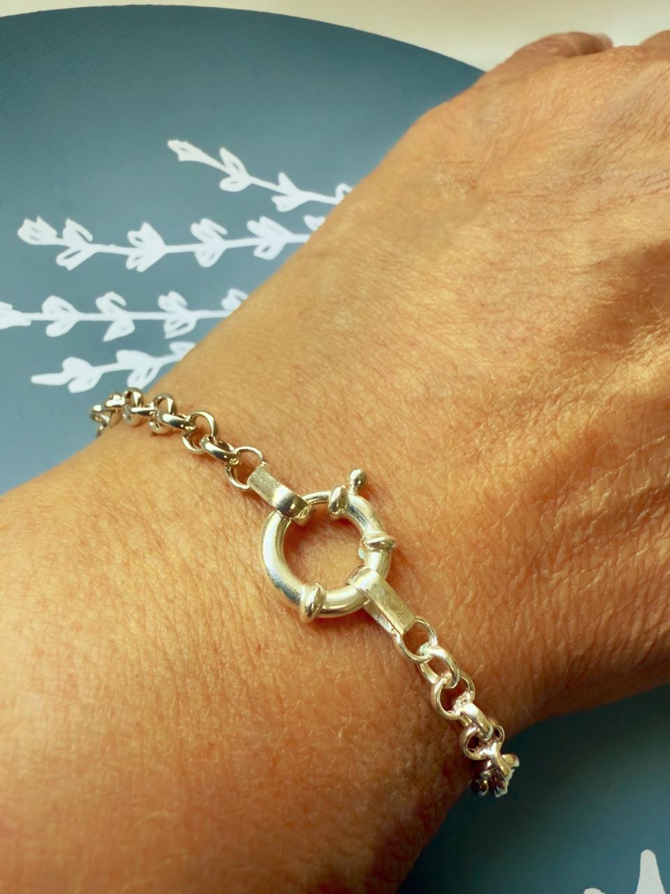 Esta pulsera es la versión más fina de nuestra propuesta de cuatro grosores, diseñada para quienes aman los detalles discretos y que duran toda la vida. Su diseño de eslabones roló en plata 925 tiene además, un cierre marinero reforzado, que no sólo es seguro sino que funciona como un detalle estético protagonista.