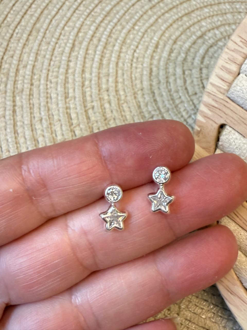 Aros confeccionados en plata 925 con dije estrella con cubics