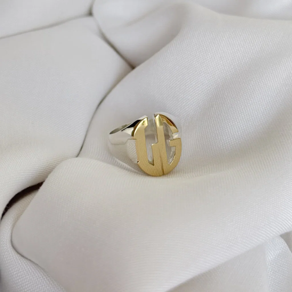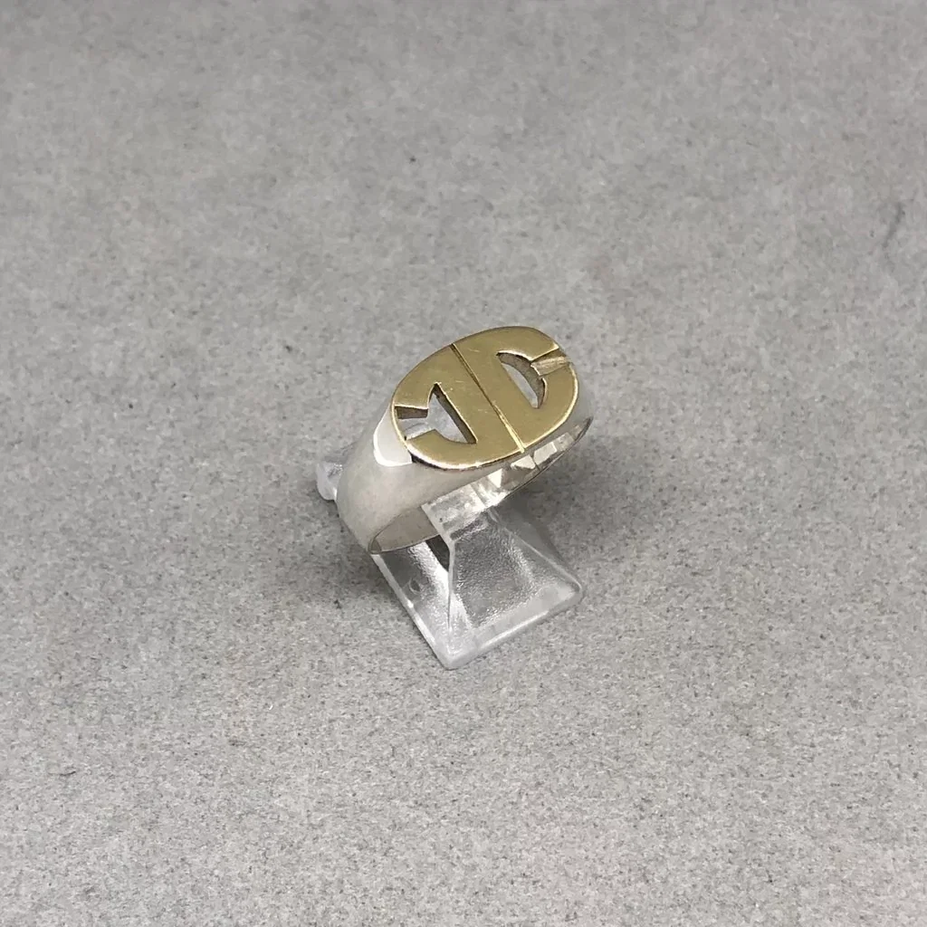 Anillo tipo sello confeccionado en plata 925, con mesa recubierta de dublé 18k, su diseño es ovalado (puede realizarse tambien de forma apaisada) y robusto lo que hace de este anillo una pieza personal y sofisticada. Ideal para el uso diario o como un regalo pensado especialmente para alguien. Disponible con iniciales personalizables. El producto se realiza unicamente por pedido, tiempo de demora 10 días habiles.