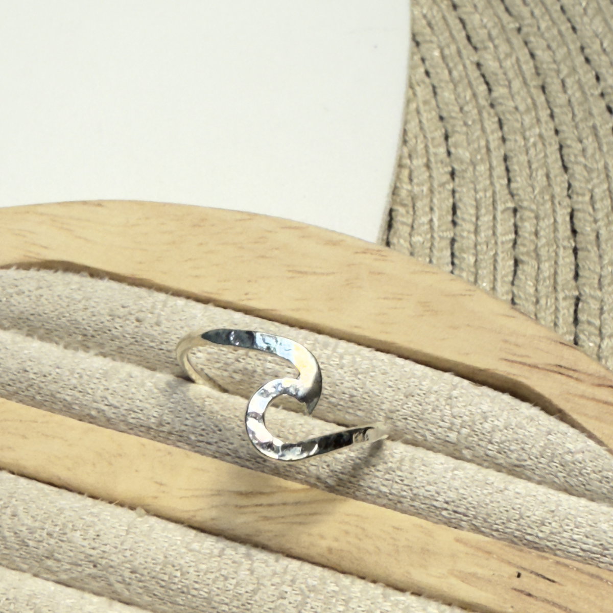 Anillo confeccionado en plata 925,con su silueta en forma de "S" y su distintiva textura martillada, este anillo es la definición del estilo bohemio moderno, su diseño abierto y ligero lo convierte en el accesorio ideal para combinar en un look diario.