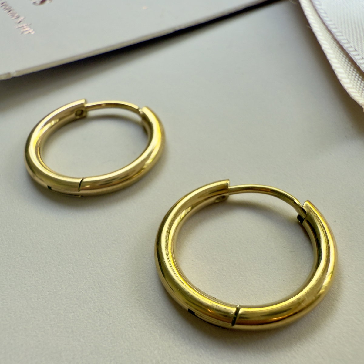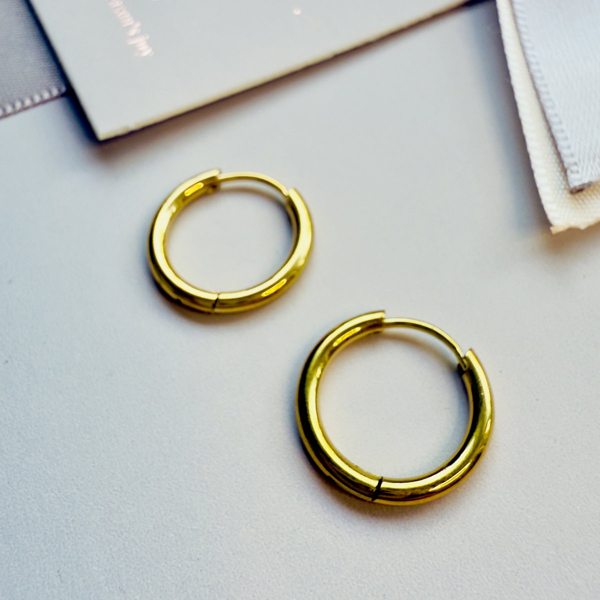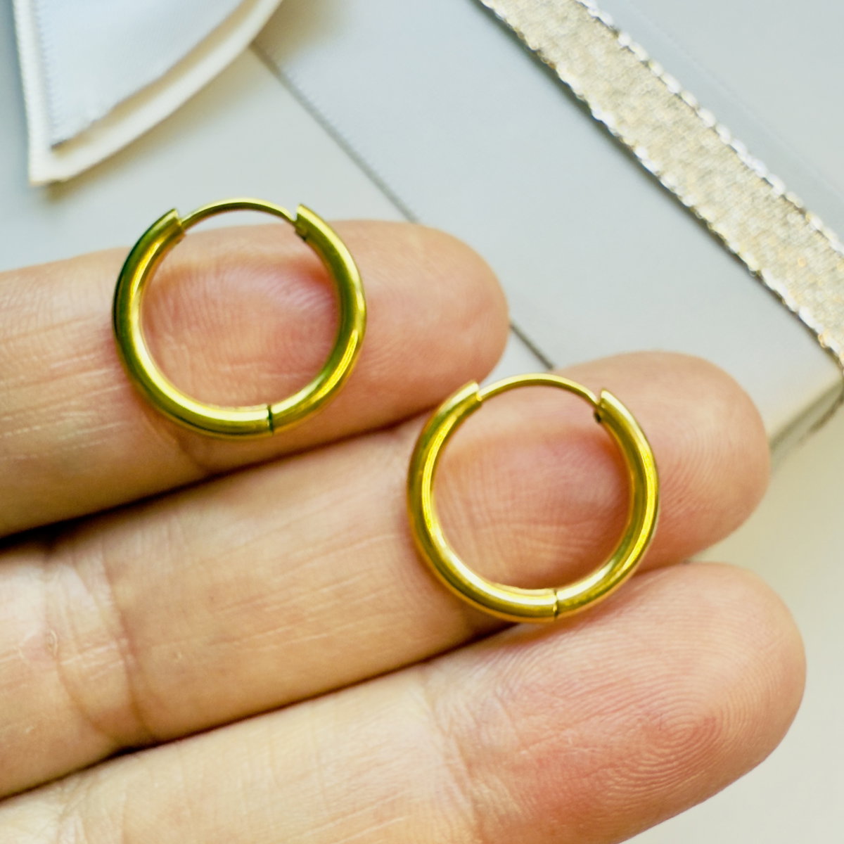 Aros argollas confeccionados en acero con baño dorado, un diseño clásico infaltable en todo fondo de armario de accesorios. Su cierre es clip italiano