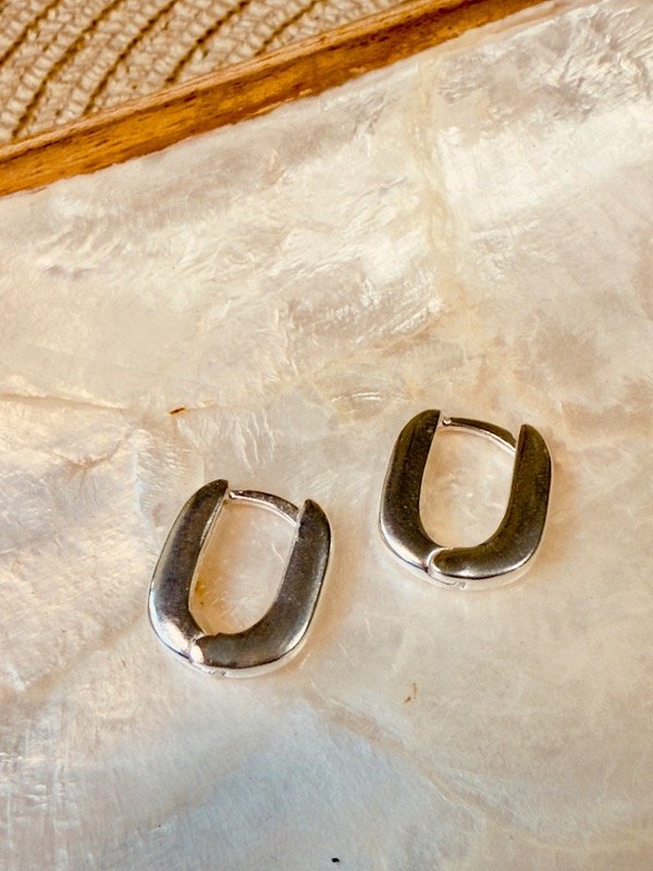 Aros tipo argolla con diseño liso y forma rectangular, ideales para quienes buscan una joya moderna, minimalista y elegante.