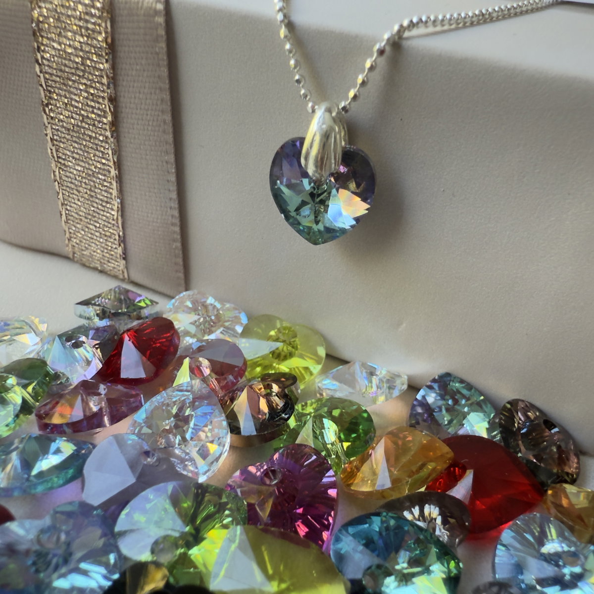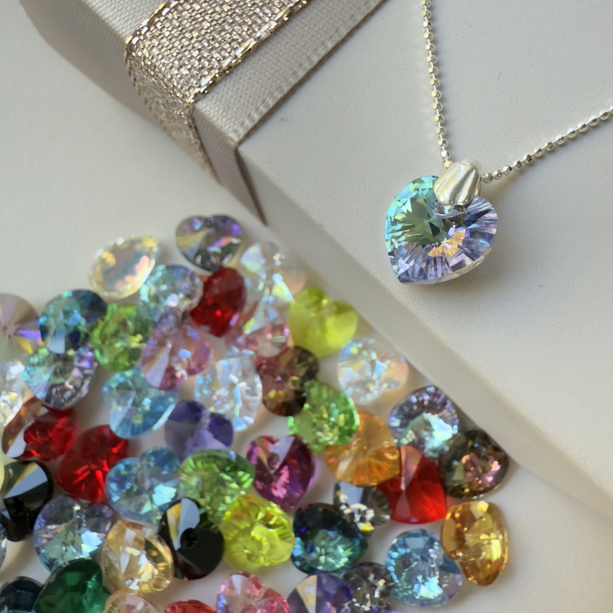 Conjunto compuesto de cadena mini bolitas facetadas confeccionada en plata 925, con dije corazón de 10mm en cristal austríaco con montura en plata lisa en plata 925.