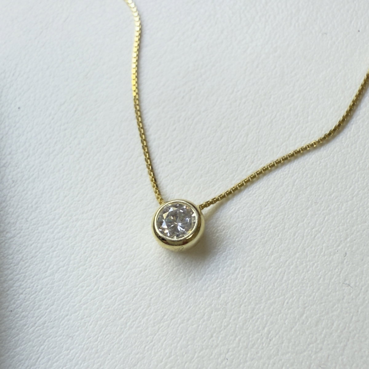 Collar confeccionado en plata 925 con baño en oro 18k , conformado por una delicada cadena veneciana con un mini dije pasante redondo con un cubics central.